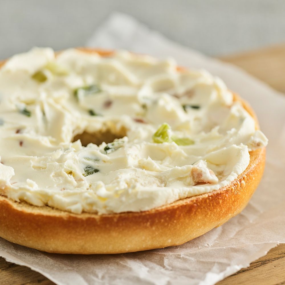 Authentic NY style kettle-boiled bagel baked fresh all day with any delicious cream cheese flavor or spread.
